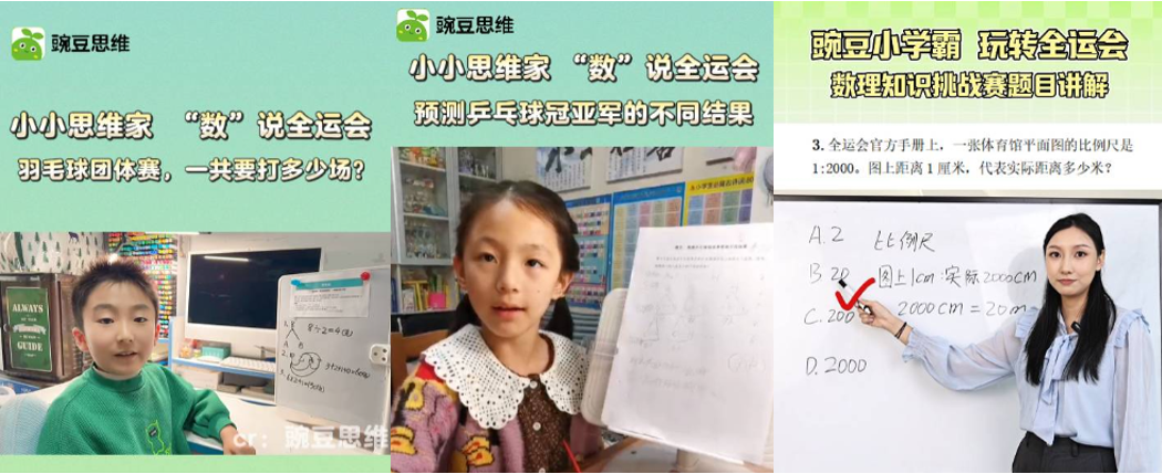 此外,豌豆思维还独创了“问题实践”和“思考工具”两大模块,将运动会、寄快递等真实生活场景融入日常学习,真正培养孩子的知识迁移、综合运用和解决实际问题的能力。全运会期间,豌豆思维发起的“全运会数理知识挑战赛”活动被北京日报报道,展现了数理思维与生活实践融合的创新模式,这也是对标新课标改革方向的有力践行。