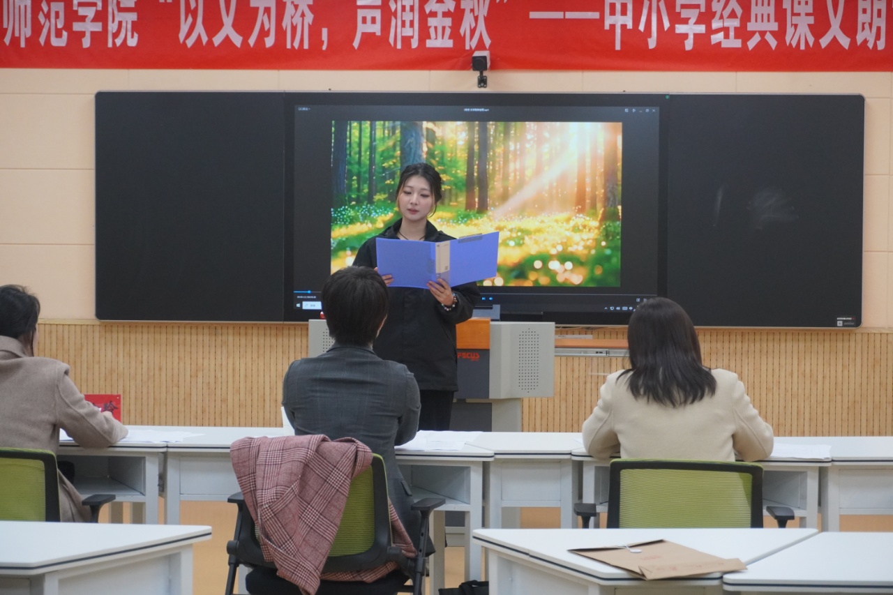 本次大赛的顺利开展,不仅为师范生提供了展示与交流的平台,更引导他们深入理解经典课文的教学价值,助力其在未来教学中更好地运用朗读技巧,激发学生对语文学习的兴趣,有利于师范专业学生提升教学基本功,涵养教育精神。