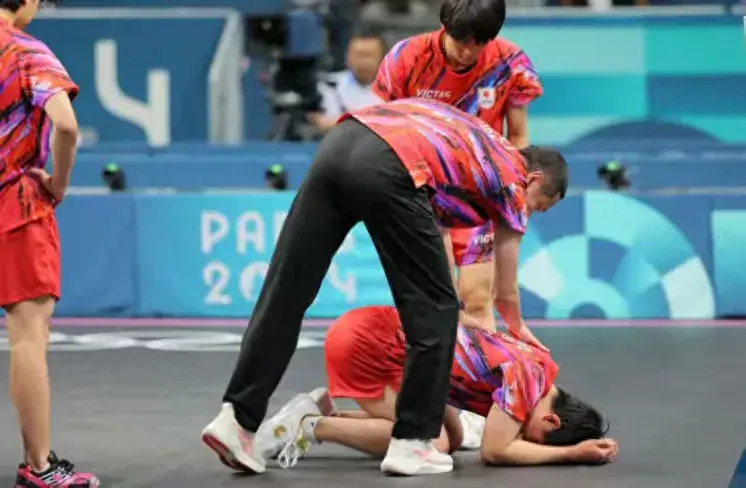 这一刻,张本智和的脸上写满了不甘与失落,他跪地痛哭,仿佛要将所有的遗憾与不甘都化作泪水倾泻而出。这不仅仅是对失败的懊悔,更是对自己未能帮助球队走向胜利的深深自责。但正如每一个伟大的运动员都会经历的那样,失败并不可怕,可怕的是失去再次站起来的勇气。对于张本智和而言,这次失利或许会成为他职业生涯中的一个重要转折点,促使他更加努力地训练,更加冷静地面对比赛,未来,他依然有机会证明自己。