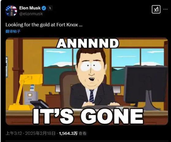 马斯克已备好人证,决心采取行动。昨日他宣布将调查诺克斯堡,并在X平台上发文称:“正于诺克斯堡搜寻黄金。”