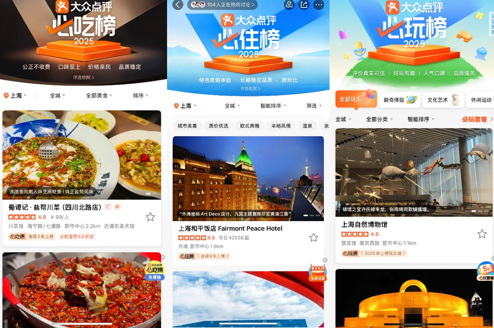 业务链路的拓展是顺势铺开的:大众点评先是通过对真实、深度评论的重视建立信任基础,吸引用户到此进行消费决策;这些因信任做出的选择被验证有效后,用户分享真实体验的意愿自然增强,于是平台能够拥有更多高质量评论;海量UGC(用户生产内容)互动数据不断沉淀,最终凝练成评分及“必吃榜”“必住榜”“必玩榜”等内容,起于平台公信力的业务影响力持续放大。
