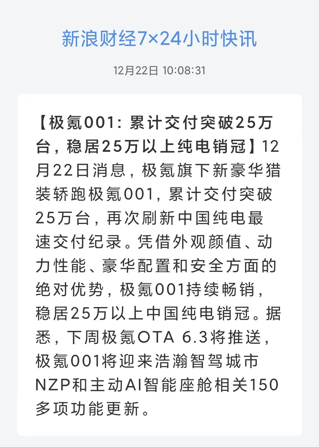 产品力够稳,产能跟得上,感觉极氪001的30万台已经在路上了