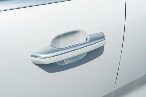 车侧的线条设计得简洁流畅,平直的线条把超过5米的车身比例修饰得很好,看着更修长优雅,完全没有臃肿的感觉。尤其是“飞桥游艇式”的车顶设计,从D柱顺着后车窗往前延伸,画出一道好看的弧线,给整车添了不少灵动和时尚感。这种车顶设计不光看着美,还让车子整体感更强,就像一艘在海上跑的游艇,透着动感和活力。