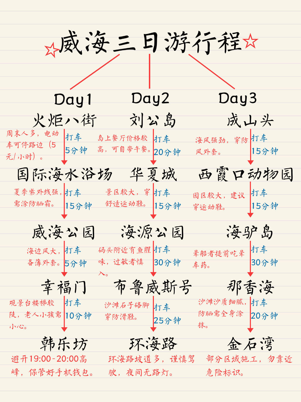 1.刘公岛/成山头需提前1-2天预约,旺季(7-8月)早订住宿