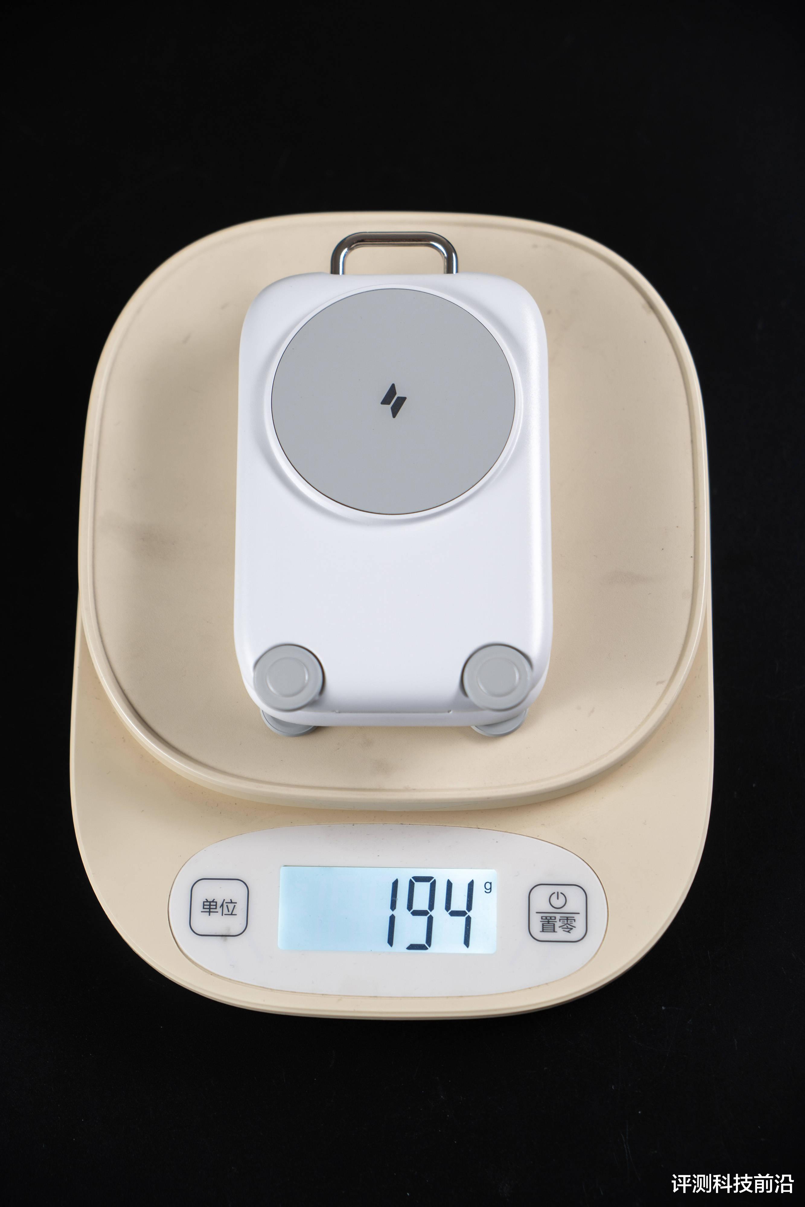 ▼称一下重量,单无线充电器大约为194克,在三合一充电器里算轻便的了,尺寸也不是很大,折叠状态不厚,外出携带没啥问题
