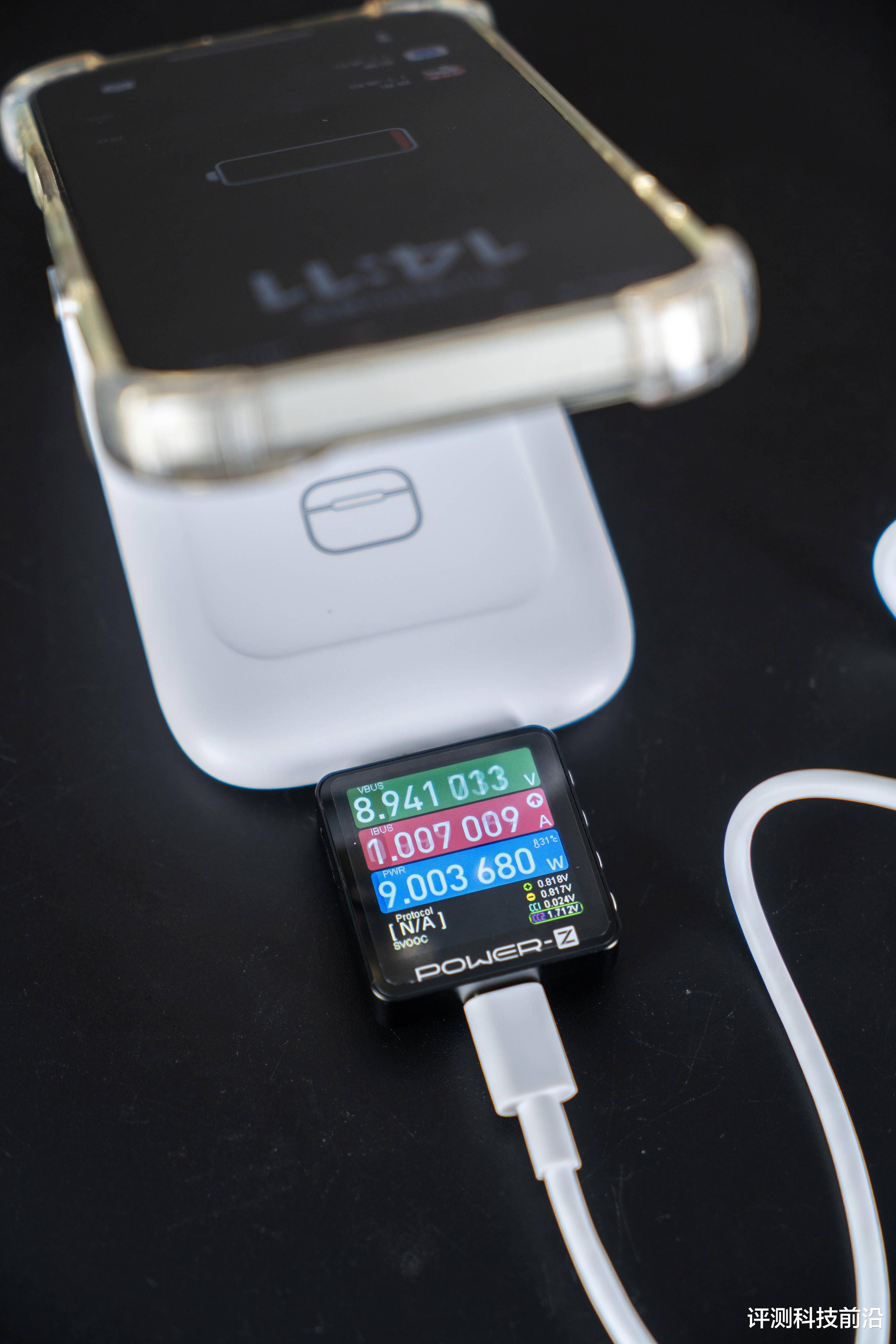 ▼我又试了一下无线耳机充电平台,发现手机放上去竟然也能以6W左右的功率进行无线充电