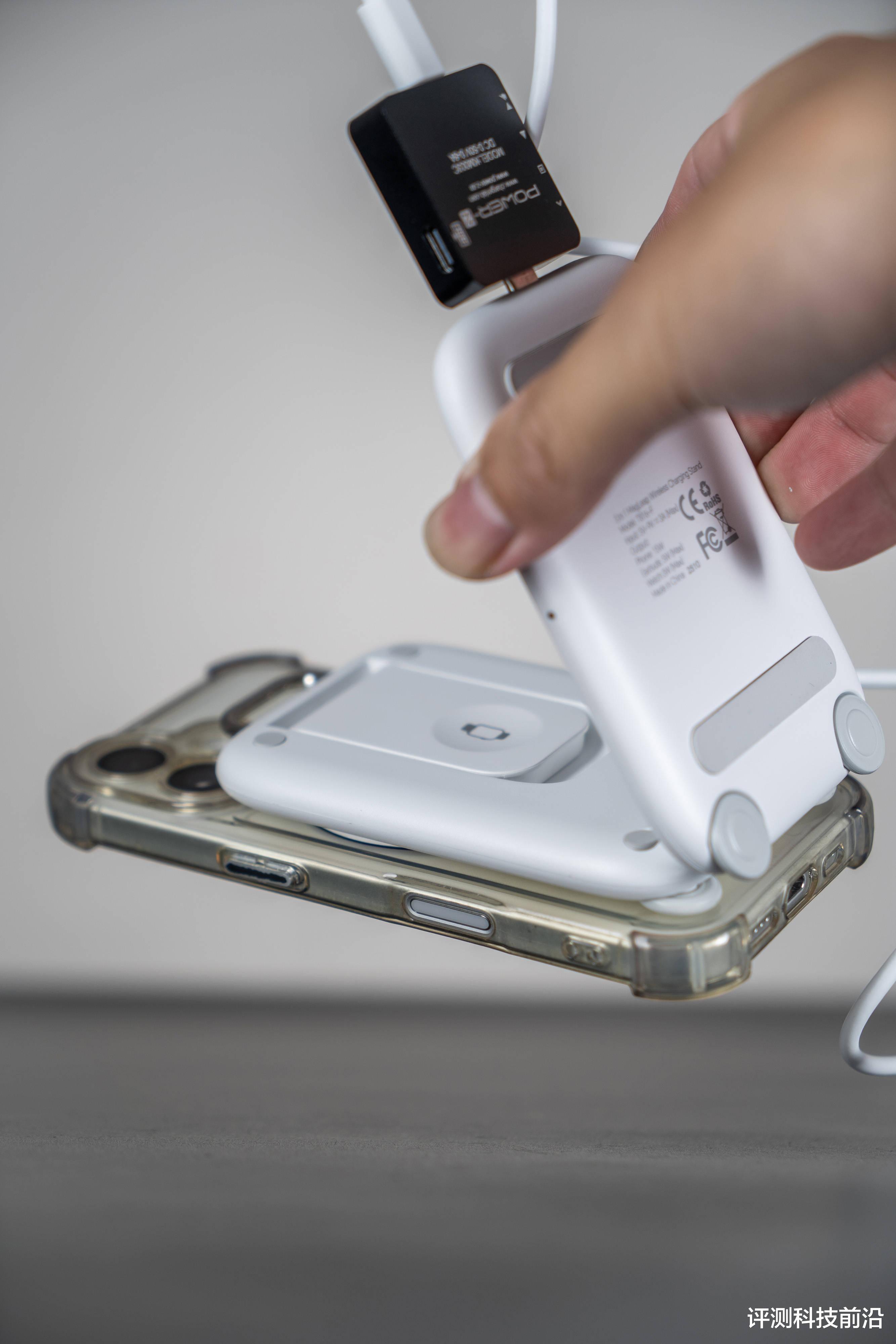 ▼那这样的话,这台三合一无线充电器岂不是就可以对两台手机进行同时无线充电了,当然它整体充电的总输出功率不会超过15W