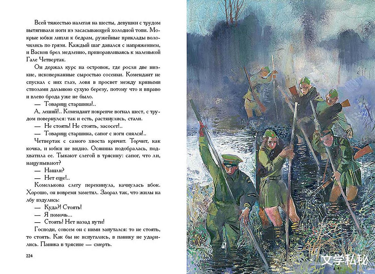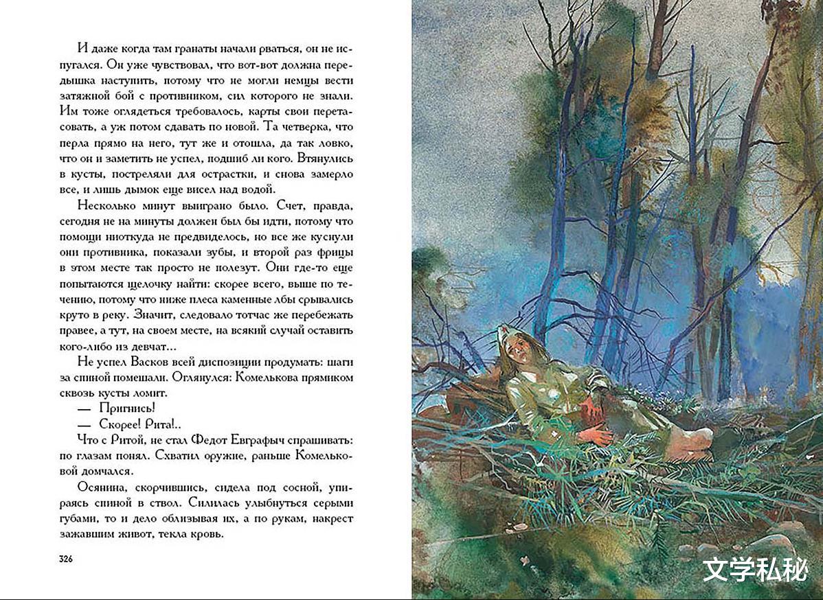 在众多苏联版与俄罗斯版的《这里的黎明静悄悄》插图中,还有一位韩国血统的画家,为小说绘制了兼具东方色彩与俄罗斯风格的插图。