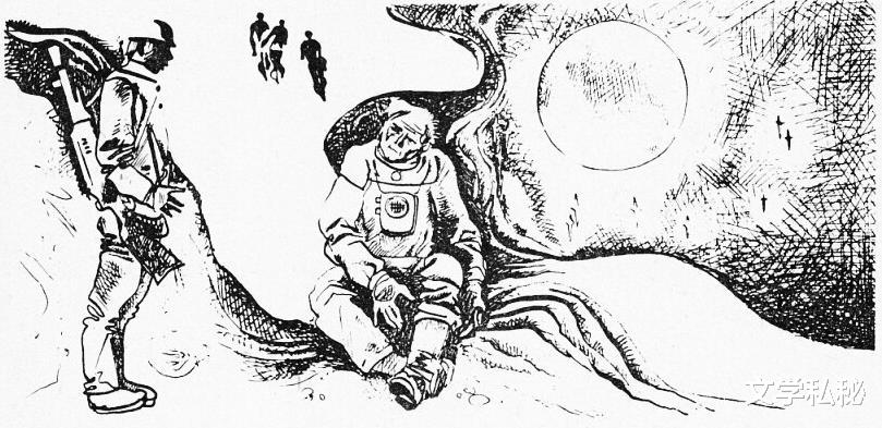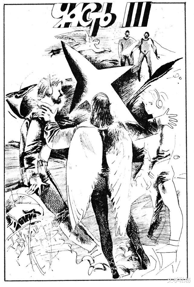 顺便,我们再看一下画家为同一位作者瓦西里耶夫的另一部小说《明天发生战争》绘制的插图: