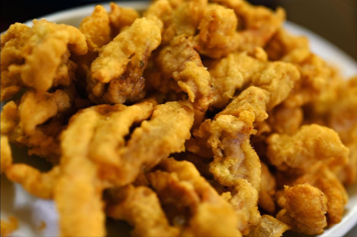 排骨选猪肋排,肥瘦相间,炸后汁水锁在脆壳里,一口爆浆。