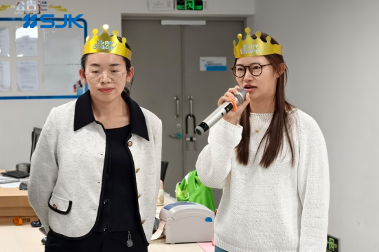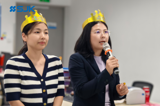 更令人惊喜的是,一位昨天刚刚入职的销售部新同事,也恰好赶上了这场生日会。“昨天我还在熟悉环境,今天就被这样的温暖紧紧包围。”她在分享中动情说道,“感谢公司的鼓励,感谢领导的关怀,也特别谢谢我的师傅小庆姐,让我在第一天就融入了这个有爱的集体。”