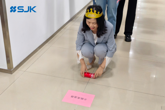 待寿星们许愿、吹灭蜡烛后,备受期待的“可乐滚滚乐”游戏将现场气氛推向高潮。欢声笑语中,一位幸运同事成功抽中“小熊蒸蛋器”,惊喜的笑容瞬间点亮了整个现场。其他几位寿星虽以毫厘之差与大奖擦肩,却同样收获了满满的欢乐与祝福,这份生日惊喜,同样珍贵。