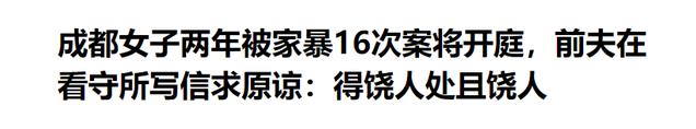 成都女子两年被家暴16次案将开庭,前夫在看守所写信求原谅:得饶人处且饶人——潇湘晨报