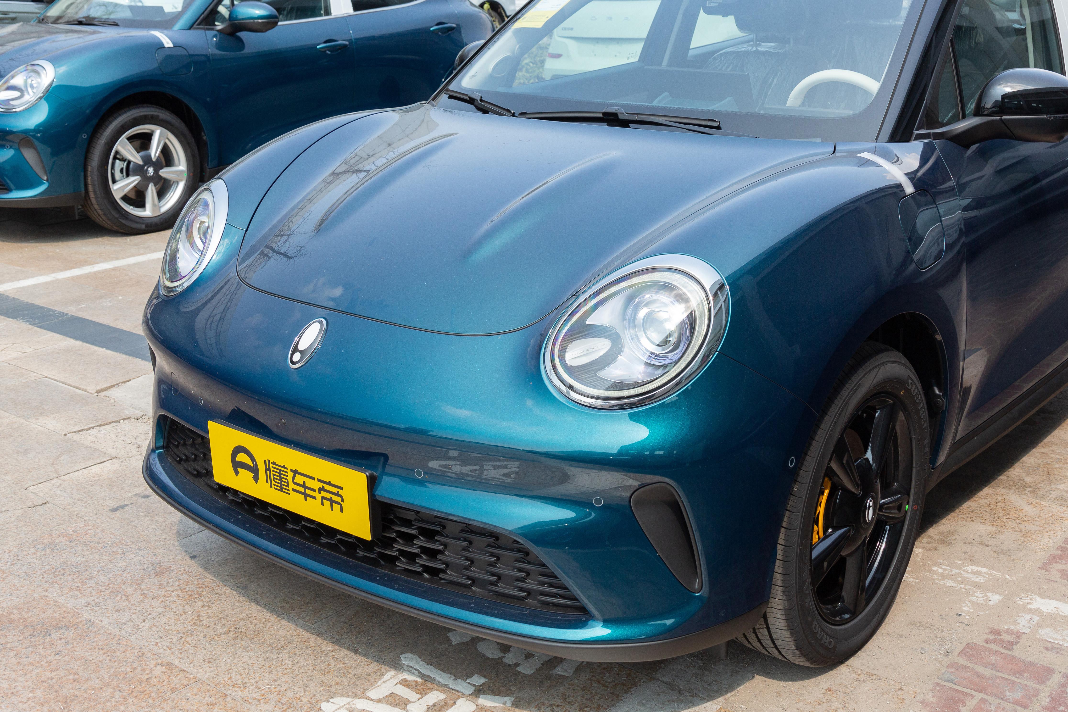 欧拉好猫的复古圆润外观一直是其标志性 特 点,2025款车型延续了这一经典设计语言。封闭式前脸搭配椭圆形LED大灯,内嵌环形日行灯模拟猫眼瞳孔,还支持流水转向效果,40颗LED光源环绕排布,夜间点亮后辨识度较高,不会显得平淡。