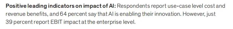 报告显示,只有39%的组织表示AI带来了实质性财务回报,实现了息税前利润(EBIT)的增长。