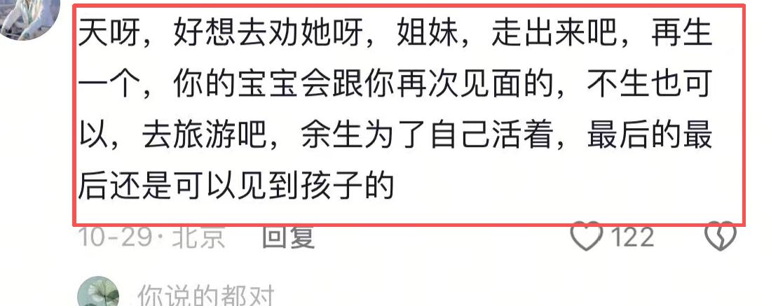 很多人在评论区劝:“放下吧,你要往前看,再生一个孩子,日子会好起来。”