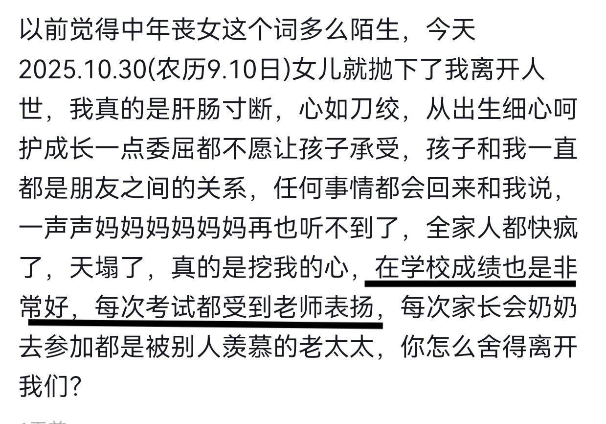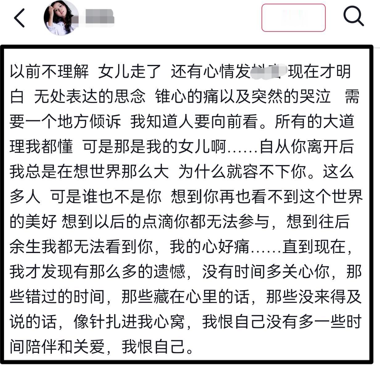 她无言以对,泪流满面,恨自己没有多陪陪女儿。