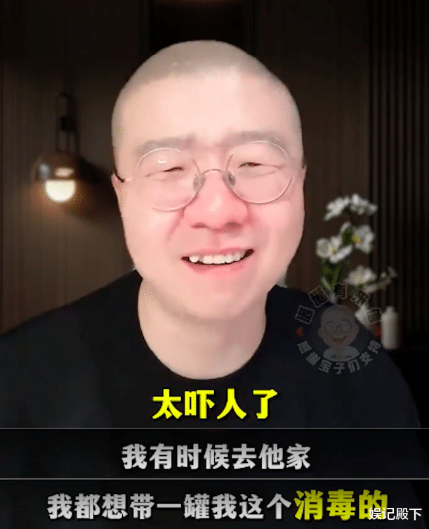 “我跟你们说啊,我有时候去他家里的时候,真的很想带一罐消毒的水,我跟你说太吓人了,太可怕啦他们家,我都不敢往那个沙发上坐,我必须的拿那个啥喷一下才能坐,太埋汰了,他们家保持了大学男生宿舍的生活习惯,我天呢就是喷,哎呦我一进去我就头晕”。