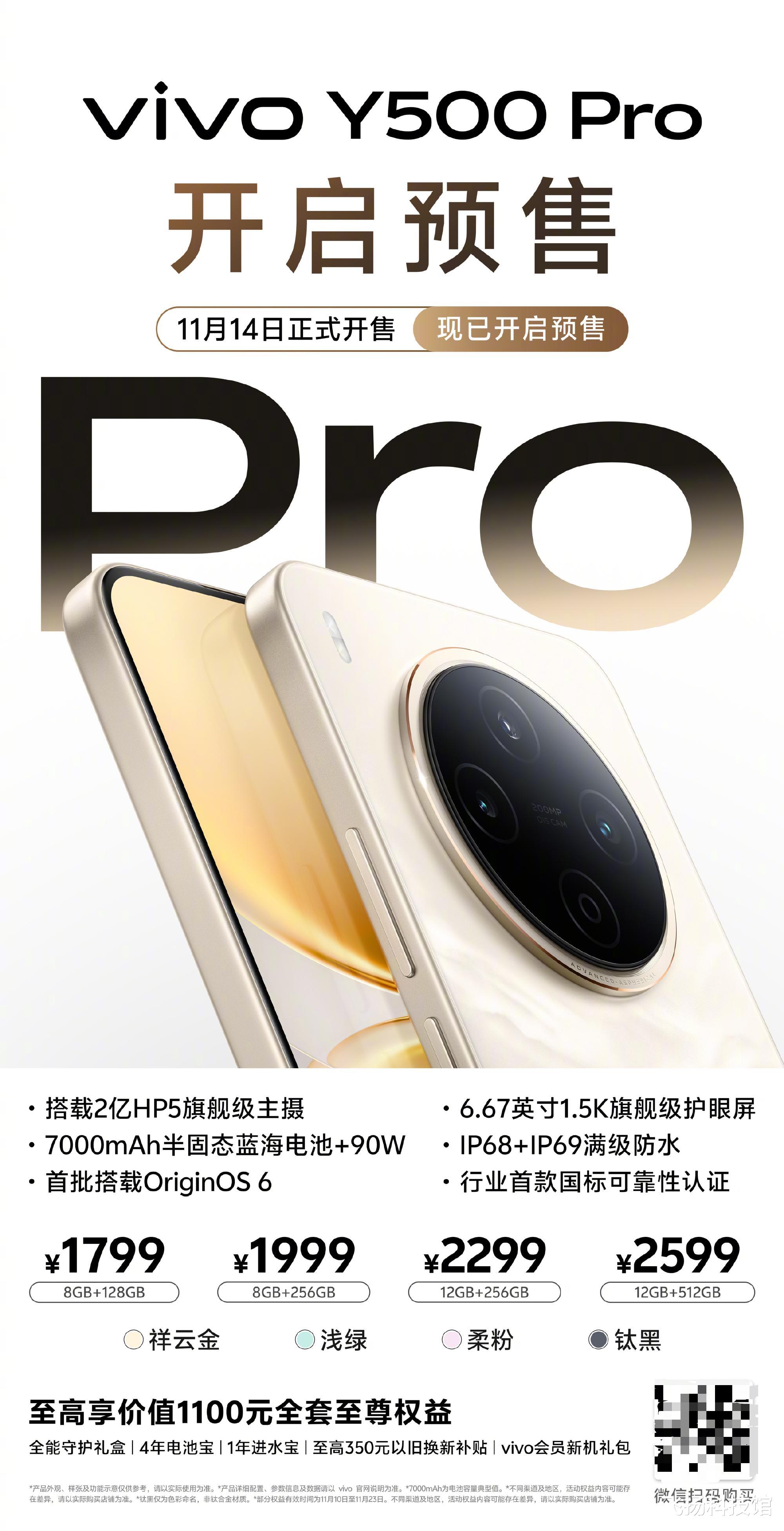 11月10日晚发布的vivo Y500 Pro,不仅在影像和续航上做到了越级,更在用户日常使用中最基础、也最影响体验的“信号”和“流畅度”两大方面,给出了旗舰级的解决方案。这款“国民小旗舰”现已开启预售,旨在打造一款长久耐用、信号无忧的“工作马”。