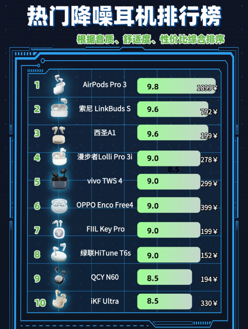 确实,选不对很容易花冤枉钱 —— 有的降噪强但音质糊,有的便宜却续航崩。下面我就结合试了不下 30 款的实测经验,给大家揭秘值得买的降噪耳机排行榜前十名,帮大家避开营销噱头,精准找到适配的那一款。