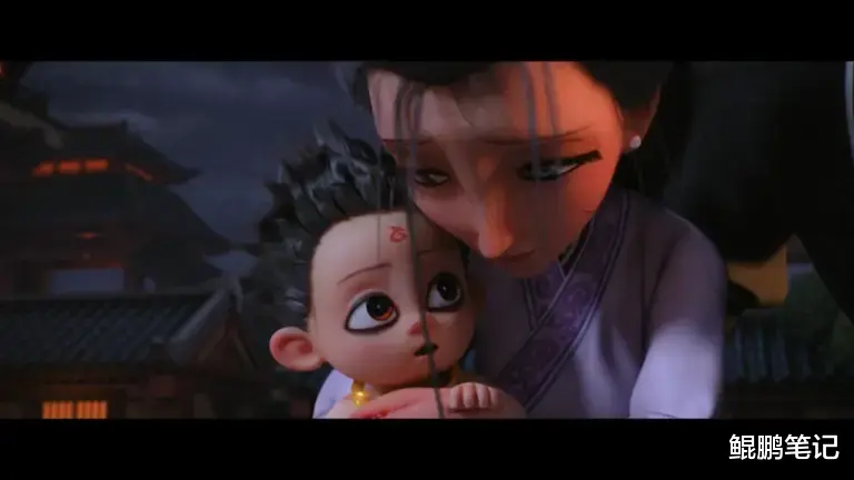 无论哪吒看起来多么叛逆,内心一直因魔丸身份备受煎熬。与哥哥们相见时选择敖丙代见,母亲临终前他大哭道歉。殷夫人洞悉儿子内心,引导他善待百姓,一次次拥抱他,告诉他自己是骄傲的宝贝。