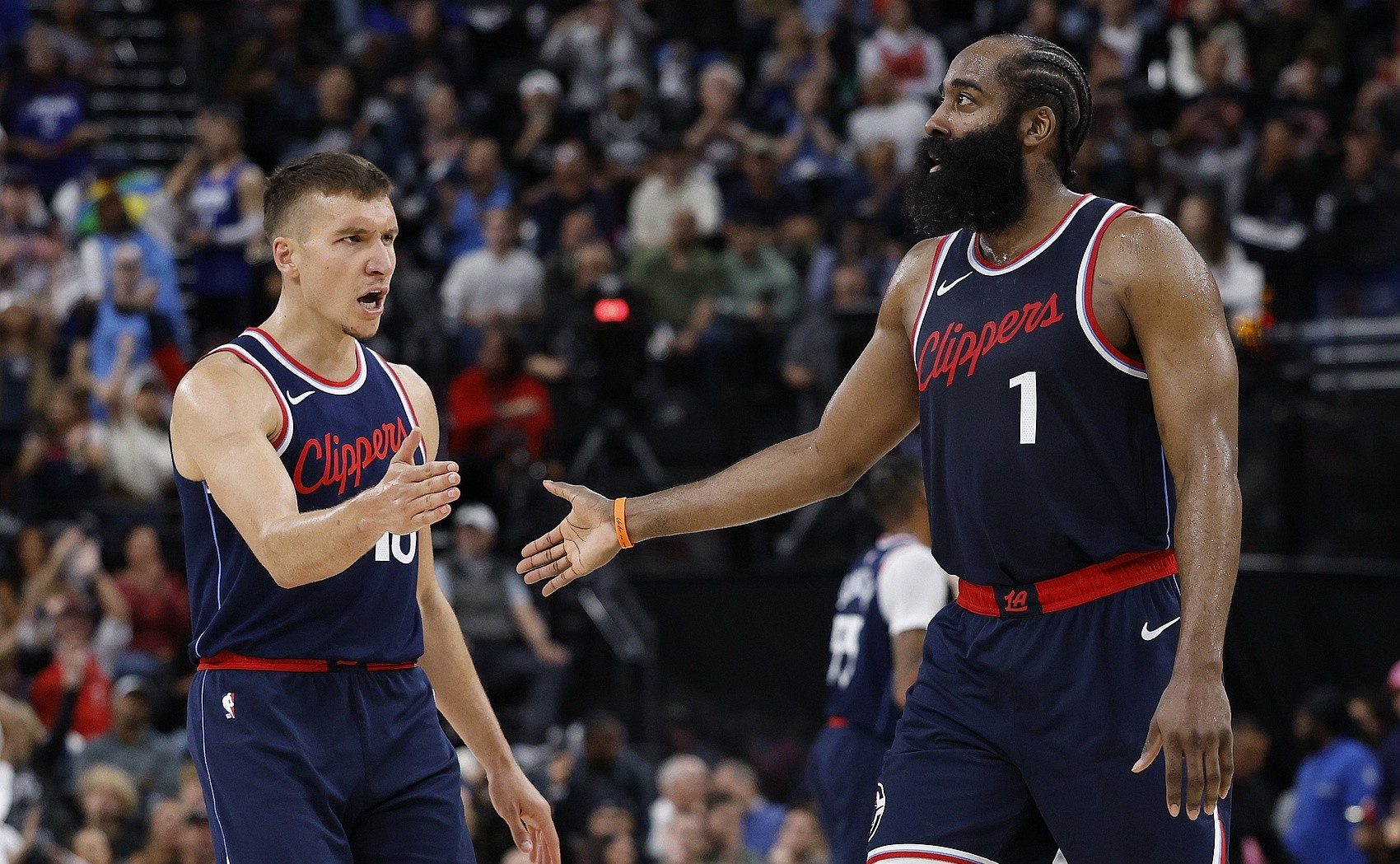 快船在替补衔接段拿到了优势,哈登或者莱昂纳德单打能吸引包夹,快船的射手群能命中三分。