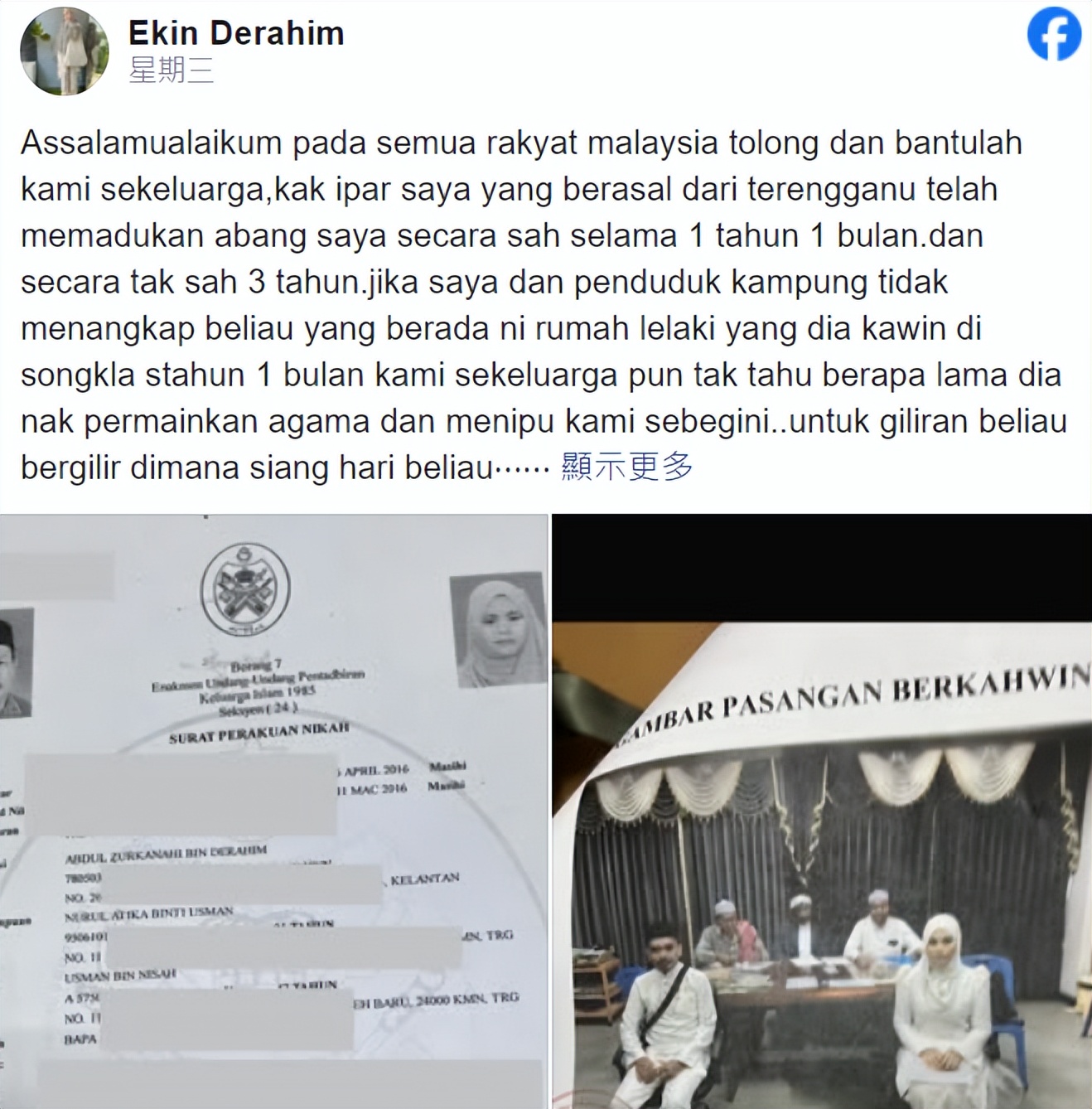 原来,马来西亚某知名律师在2023年就曝出过,1名居住在泰马两国边境上的女子,在泰国和第一任丈夫登记结婚。之后,她又回到马来西亚和第二任丈夫办理结婚手续。