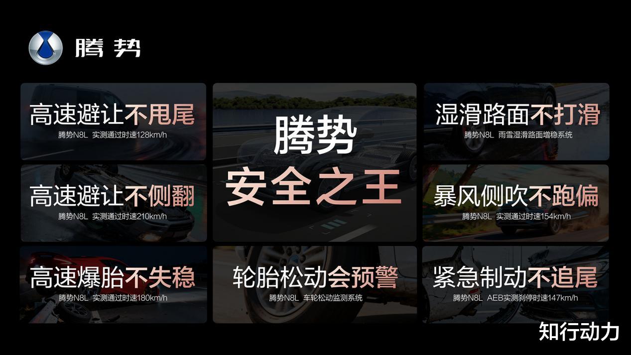 另外凭借易三方,腾势N8L还实现了128km/h高速避让不甩尾、210km/h高速避让不侧翻、180km/h高速爆胎不失稳、154km/h暴风侧吹不跑偏、147km/h AEB自动紧急制动、轮胎松动会预警、雨雪内八模式等超越同级的安全能力,守护每一次家庭出行。