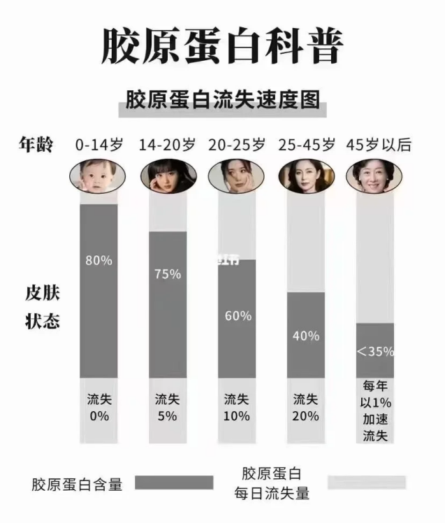 先搞懂:胶原蛋白到底是皮肤的什么角色?简单说,它就像皮肤深层的弹性支架——年轻时,皮肤里的胶原蛋白又多又有韧性,能把皮肤撑得饱满紧致,摸起来有弹性,笑起来也不容易留纹;但从25岁开始,胶原蛋白会慢慢流失,到50岁左右,皮肤里的胶原含量可能只剩年轻时的一半。支架松了,皮肤自然会显得垮、显细纹,甚至摸起来干巴巴的,这就是为什么我们总觉得脸没以前饱满。