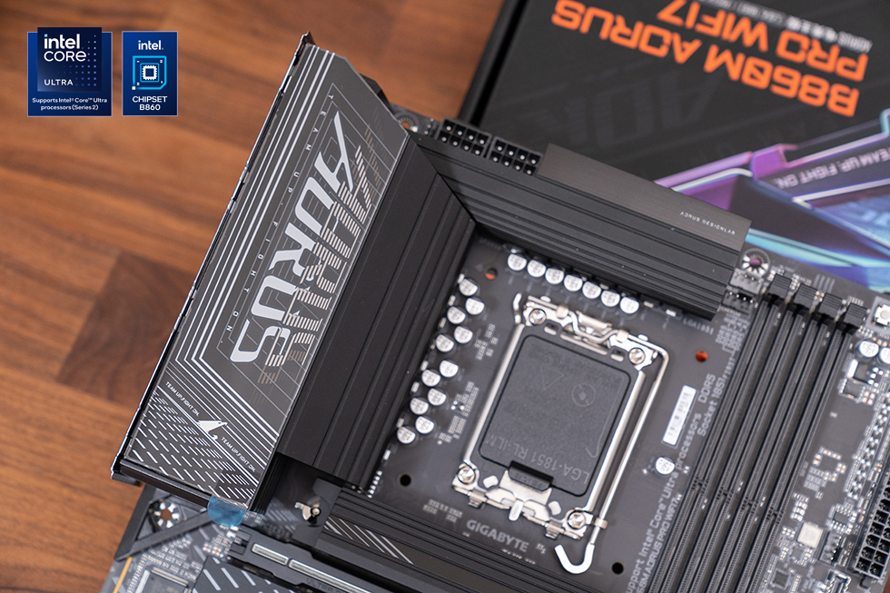 技嘉 B860M 电竞雕采用全新的LGA 1851接口,支持英特尔® 酷睿™ Ultra 200S系列处理器。采用了RL-ILM(减少负载独立加载机制)显著提高了散热,最高可达4°C,并避免了CPU IHS(集成散热器)可能的弯曲,允许发烧玩家毫无顾虑地进行CPU超频。