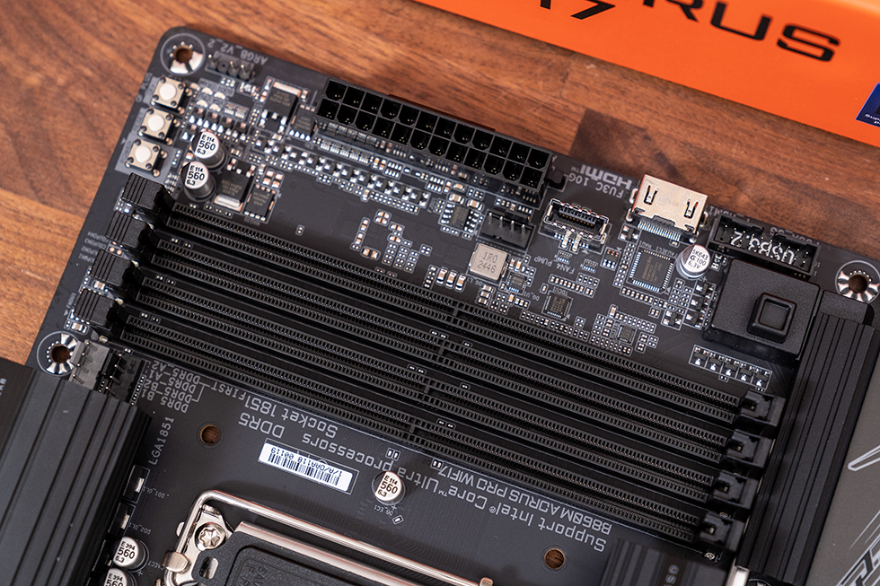 技嘉B860M电竞雕主板配备4个DDR5 DIMM插槽,最大内存容量可达256GB(单条插槽最大支持64GB),内存频率最高支持至9200+MHz。搭载DDR5 XMP Booster内存超频功能,支持一键式内存超频操作,可充分释放内存超频潜力。内存插槽右上方集成设置超频调试按钮及Debug灯组,便于用户精准定位装机问题并实现快速操作。