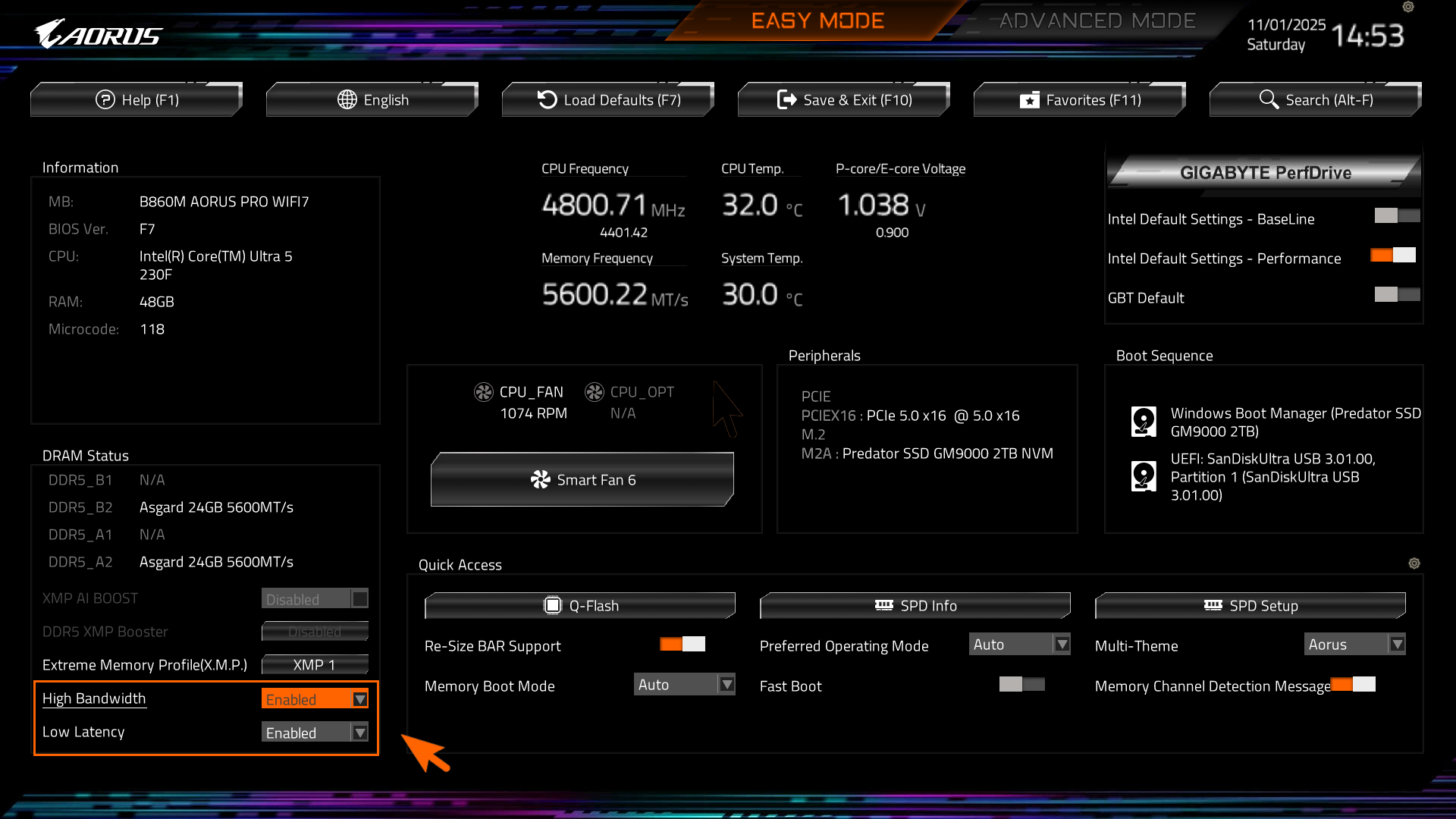 技嘉 B860M AORUS PRO WIFI7 与 Intel Ultra 230F 的组合,精准命中了 2000元价位段的电竞需求:Intel Ultra 230F 的 10 核规格与 5.0GHz 睿频,满足了当前主流游戏与多任务处理;主板则以超规格供电、Wi-Fi 7、PCIe 5.0 等旗舰级配置,弥补了中端平台的常见短板。总体而言,这套平台适合追求 “当下够用、未来可升级” 的中端电竞用户,其在性能、扩展性与性价比之间的平衡,使其成为当前 Core Ultra 平台的优选搭配方案。