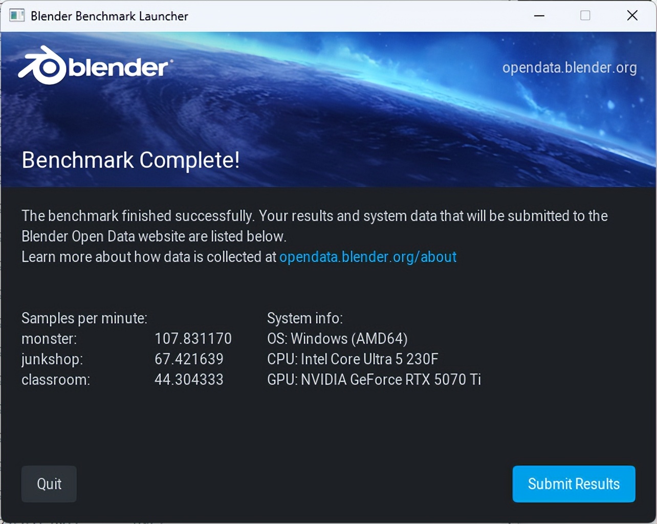 3D渲染方面我们测试了V-Ray以及Blender两款软件,V-Ray得分17647,Blender monster 107.831170,junkshop 67.421639,classroom 44.30433 。