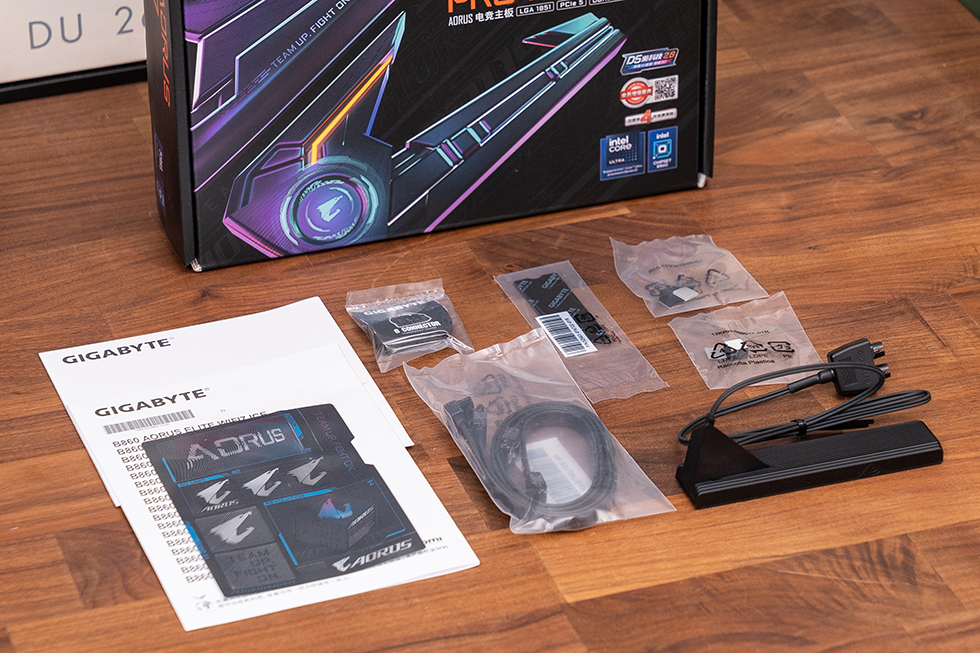 配件方面,技嘉B860M电竞雕主板提供了可拆卸的 WiFi7 增强天线,跳针集线器,硬盘转接线,备用 M.2 固态散热片等。