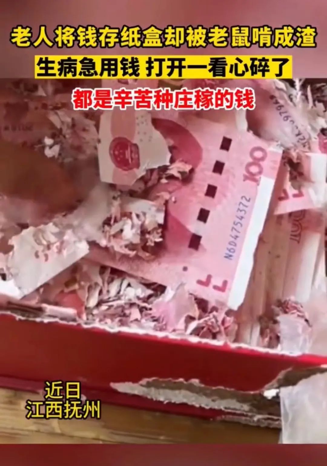 在江西,有这样一个老人家。他将自己卖粮得来的钱存放在一个纸盒里,可能是觉得这样更安全,或者是习惯了这种传统的存钱方式。但是,他万万没想到的是,这个纸盒里面的钱成了老鼠的“美食”。