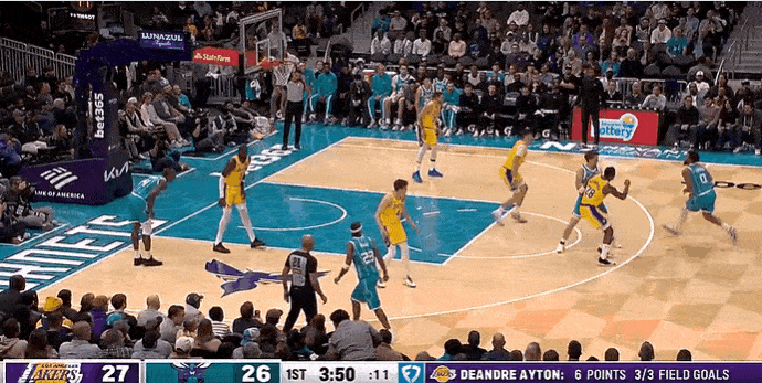 NBA常规赛,湖人对阵黄蜂的比赛正在进行中。