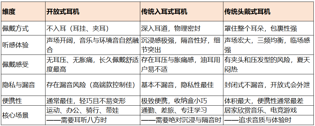 开放式耳机和入耳式、头戴式最本质的区别到底是什么?只是塞不塞耳朵而已?