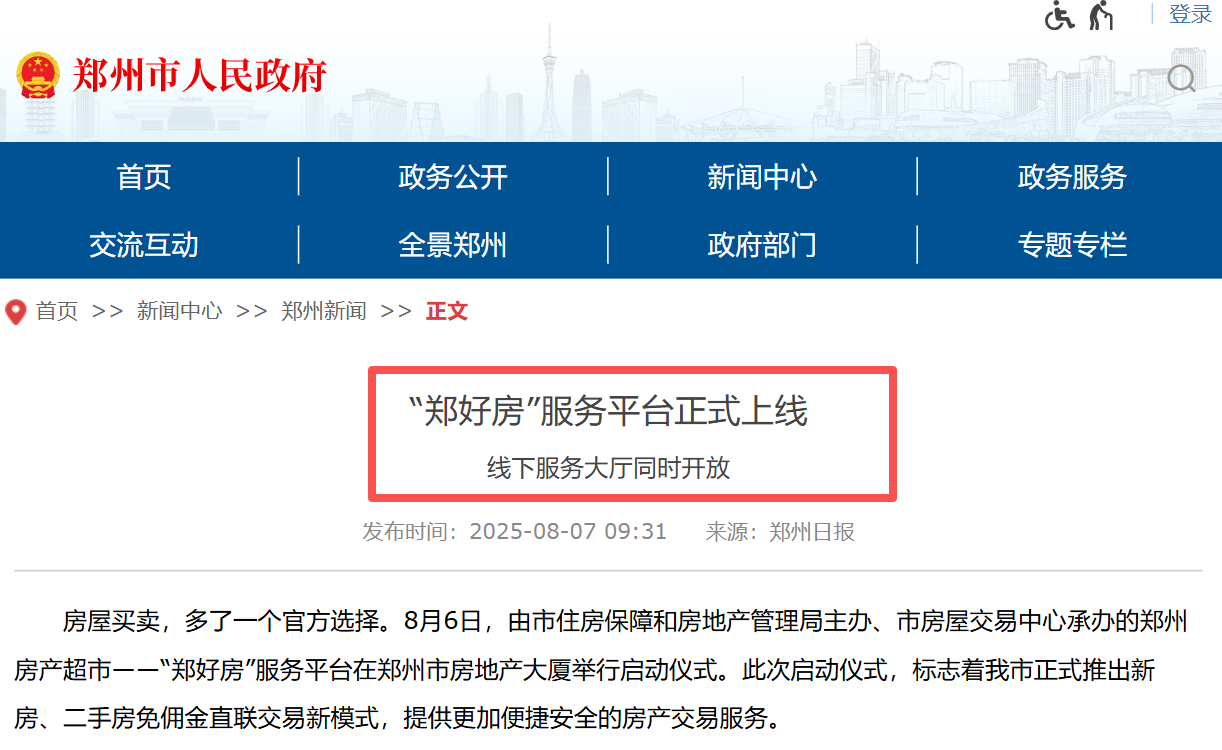 郑州市人民政府官网—《“郑好房”服务平台正式上线》