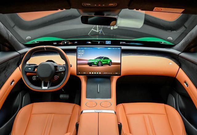 内饰方面,天际屏设计、悬浮式液晶屏,科技感是到位了。