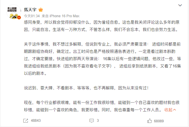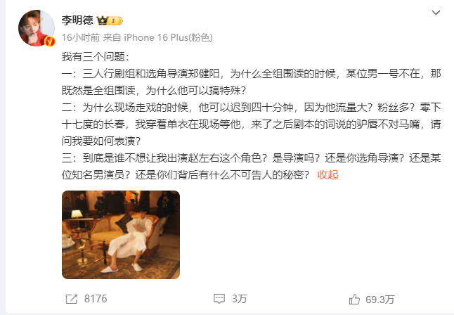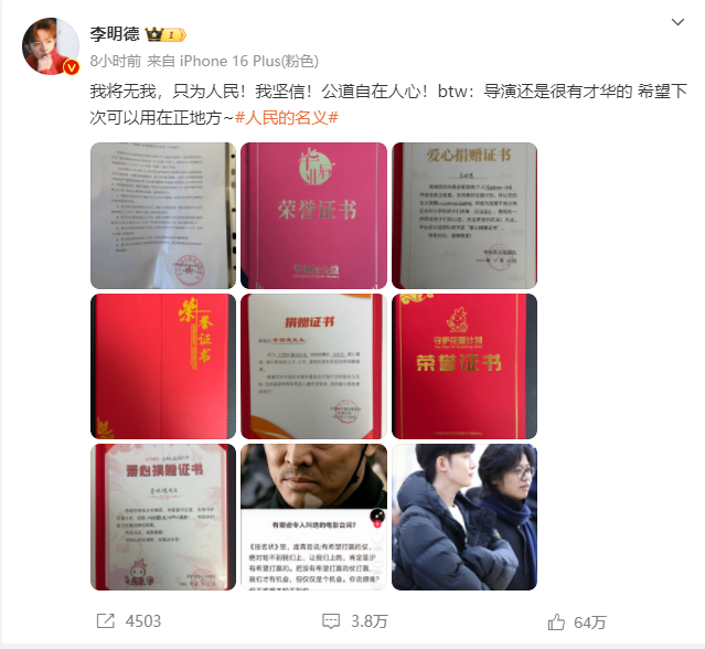 李明德随后又发了新的微博,斥责剧组的作为,辜负了自己的“真心换真心”。