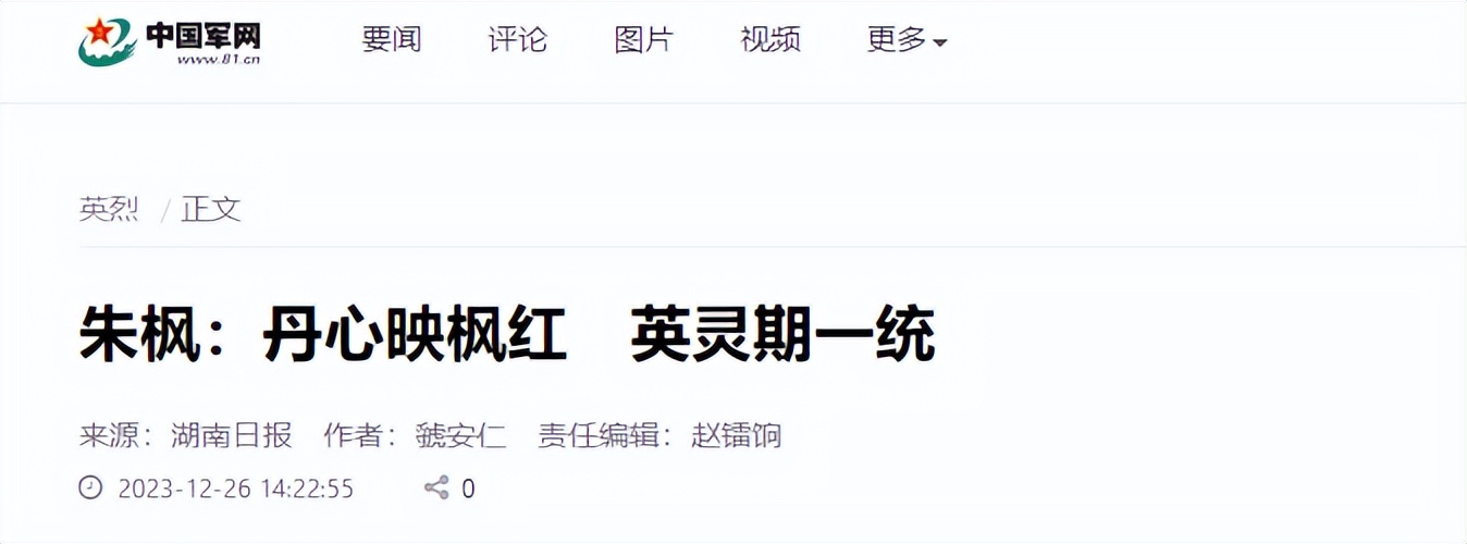 【1】中国军网——《朱枫:丹心映枫红 英灵期统一》