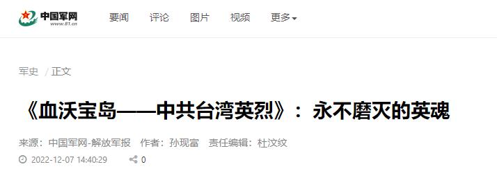 【2】中国军网——《血沃宝岛——中共台湾英烈》:永不磨灭的英魂
