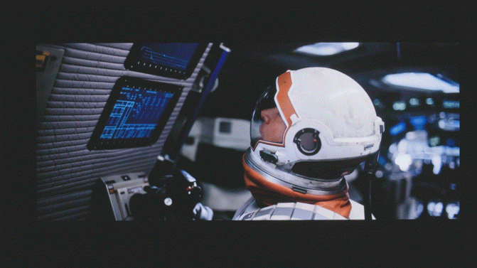 注意看马特达蒙强行对接太空飞行器这段的细节,舱室内的色彩、暗部细节、这种IMAX胶片加上杜比世界的特有质感,还有后半段的大光比场景,飞船表面阴影处的细节,非常完美。