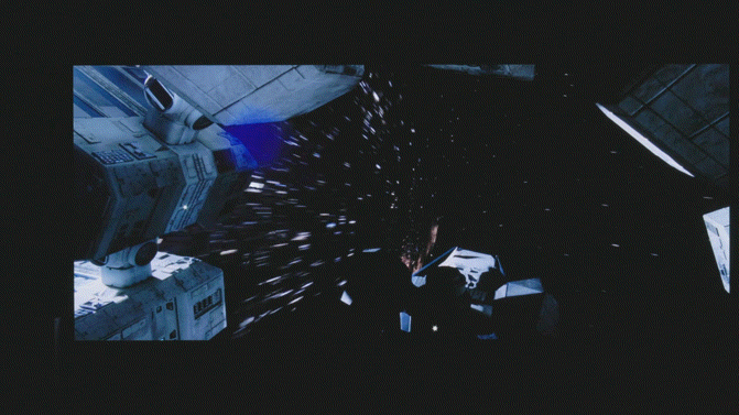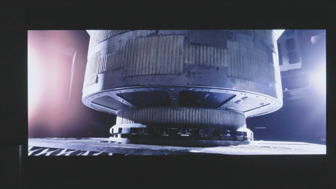 未知技术手段实现了空间的曲率飞行,这一段我看了后来的幕后,实现方式也很有意思。