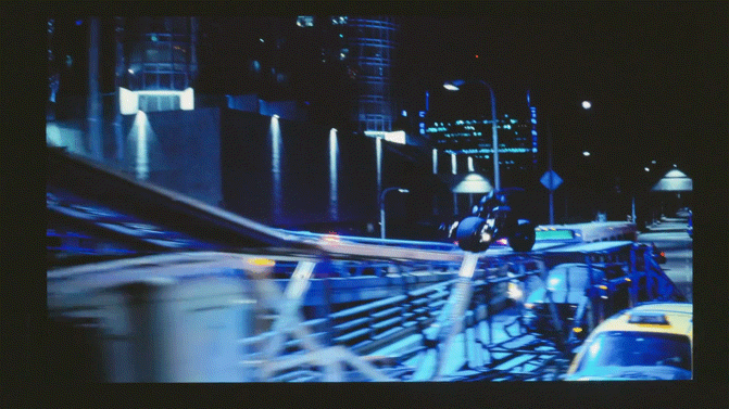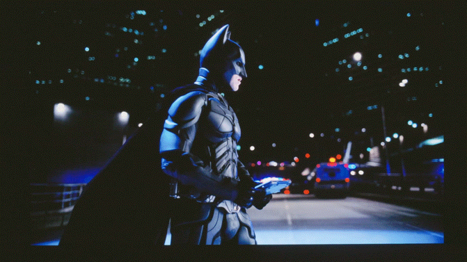 蝙蝠侠这段打光打出了相当可观的质感,盔甲上的细节,背景闪耀的红蓝警灯,探照灯闪过的路面,细节相当精细,色彩还原的不错。