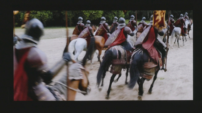 龙之家族第二季,兰尼斯特大军抵达目的地(具体我忘了),这是一个动态场景,红色披风的色彩和皮革铠甲质感都表现的不错。