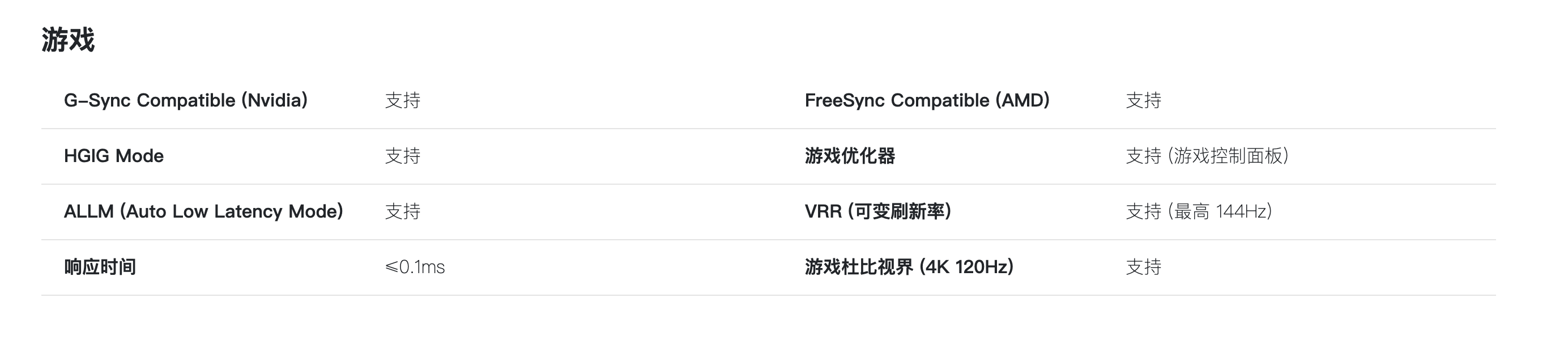 另外自动低延迟模式VRR (可变刷新率)均提供了支持。