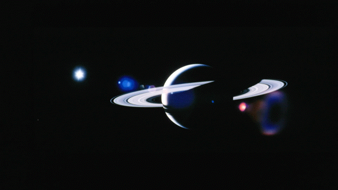 不过当年虽然去了电影院看了这部,但是并非IMAX屏,在家当年也没有那么好的显示设备,无法展现它的画质,注意上图这段飞行器刚路过土星轨道,背景深邃的黑。