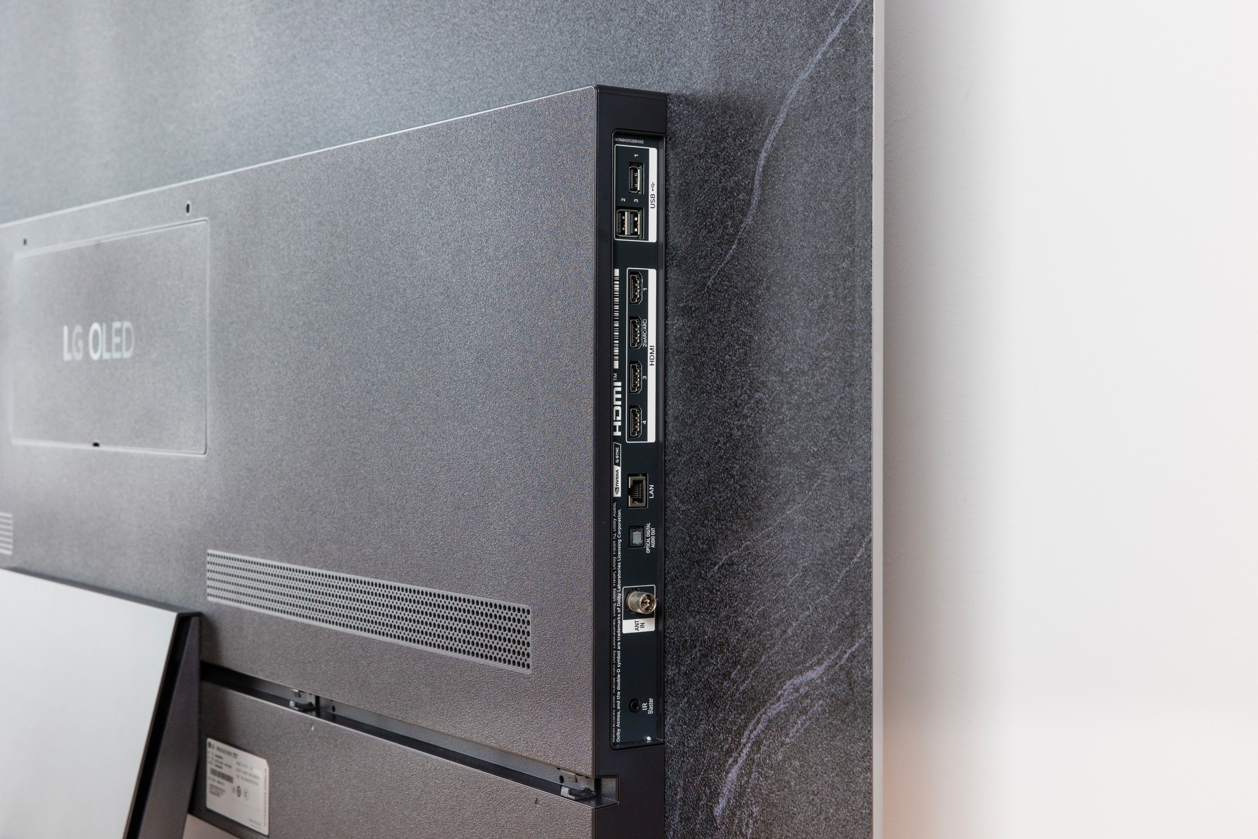 LG OLED 83C5依旧是C系列的背包设计,前面部分仅有OLED面板,不过就算是后部分的背包,整体厚度依旧比较纤薄。