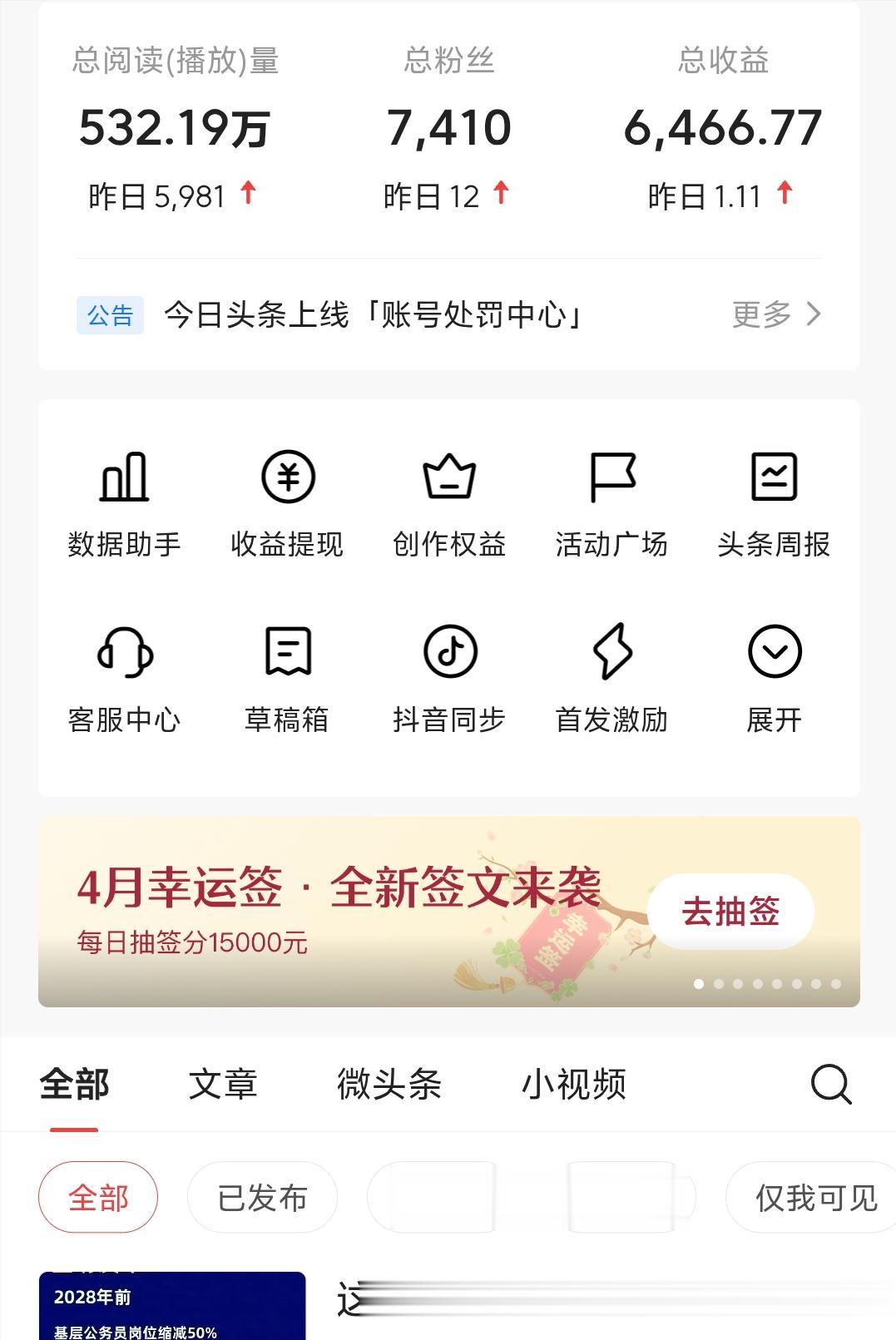 这里我想重点说一句:写文章才是赚钱和赚大钱的本质,微头条可以写,但是不能想着靠微头条来作为收入的根本。